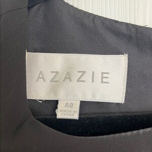 Chic black maxi dress with pleated skirt. Sleeveless design by Azazie. Perfect for formal events.