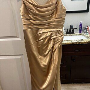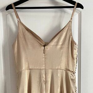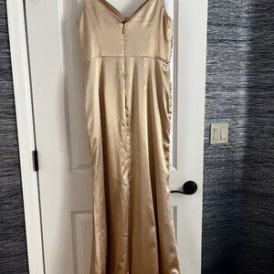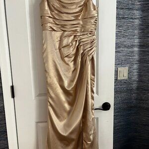 Size 12 Champagne Bridesmaid dress from Azazie. Condition is brand new, only worn once. Fully lined. 100% Polyester material for lining and shell.