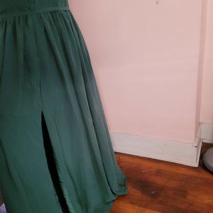 Get ready to stun in this gorgeous Azazie bridesmaid dress! The A-line silhouette and pleated details create a flattering shape for any body type. The eucalyptus green color is both unique and elegant, making it the perfect choice for any wedding or formal occasion. Made with high-quality polyester material and crafted with care in China, this dress is sure to impress. The sleeveless style allows for easy movement and comfort, while still maintaining a chic look. Whether you're a regular size L or just looking for a standout dress, this Azazie piece is a must-have for any fashion-forward wardrobe. conditon pre-owned