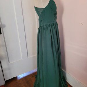 Azazie Bridesmaid Dress A-Line Pleated Eucalyptus Green Size L