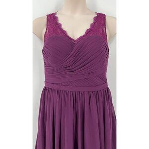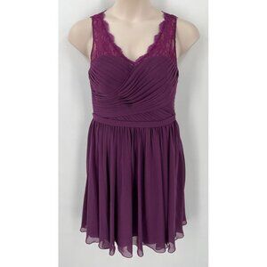 Azazie Bridesmaid Dress Scoop Neck Lace Accent Knee Length Measures Size 8