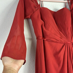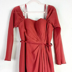 Azazie Bridesmaid Maxi Dress Pleated chiffon in terracota sz A6