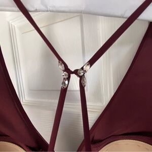 This is a cute Azazie bridesmaid dress - color is a burgundy/ Cabernet