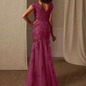 Stunning lace maxi dress with cap sleeves. Fitted bodice and flowing skirt. Perfect for elegant occasions and also perfect for those curvy women out there! Size 12🥰