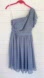 - One shoulder with flutter cap sleeve, hidden side zipper with hook and eye closure, ruching on bodice, boning and light padding at bust, chiffon, lined