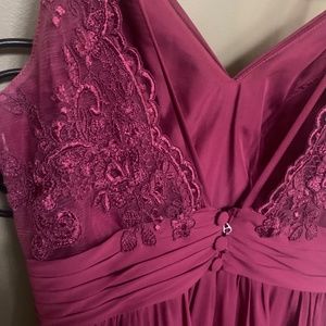This listing is for an excellent condition Azazie Crystal dress in mulberry, size 2. No signs of wear at all, absolutely stunning on! The back lace detail is gorgeous! Zipper and clasp work perfectly. Smoke and pet free home. Worn for literally 2 hours!