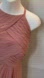 Elegant Azazie gown with a halter neckline. Features a pleated bodice and flowing skirt. Ideal for prom or formal occasions.