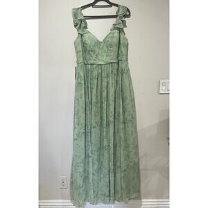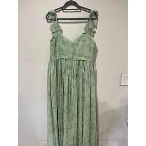 Elegant green maxi dress with floral pattern. Features ruffled sleeves and a side slit. Perfect for special occasions. Worn once, tags removed but clean and perfect for weddings. Altered to a 3 inch heel and i’m 5’6