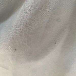 Does have 2 small stains on the front (see photos), and some remnants of fashion tape on one strap (I'll keep trying to get it off!)