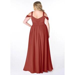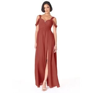 Azazie Lianne Terracotta size A10 A-Line Off the Shoulder Chiffon Dress