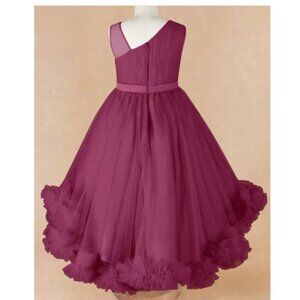 Azazie Lottie Flower Girl Satin Tulle High Low Dress Party Mulberry Size 3