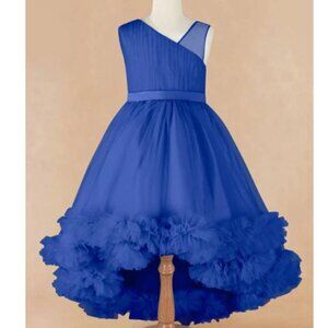 Azazie Lottie Flower Girl Satin Tulle High Low Dress Party Royal Blue Size 5