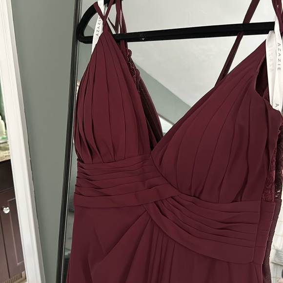 Like new azazie bridesmaid dress worn in one wedding, altered in length for someone who is 5’7”. Smoke free, pet free home. No stains, rips or tears.
