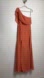 Azazie Modella Mai Tai One Shoulder Floor Length Gown. Chiffon, shoulder tie, structure bodice, leg slit, soft smooth orange brown pink. Size women’s 10. Measurements laying flat are approximately Waist- 19 Length- 60