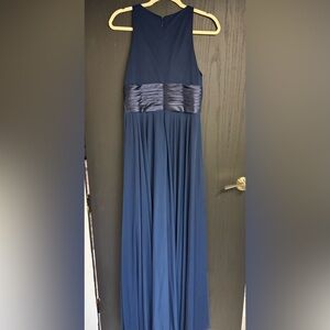 Used once. Length was not hemmed and is very long. A 5’9” women in 3” heels could wear this. Fits for women’s size 8