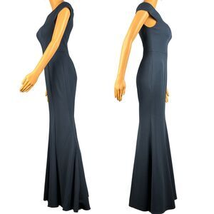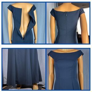 Azazie Nicolina Mermaid Square Neckline Stretch Crepe Dark Navy Dress Fabulous off the shoulder and floor length bridesmaid dress. The sexy mermaid silhouette emphasizes the figure and makes the perfect dress for your bridal party while providing comfort. Size A2 on tag- please review measurements on listing photos Floor length flattering fit Slightly off the shoulder short cap sleeve style Stretch crepe fabric (slight stretch) Trumpet/Mermaid Silhouette Back Zip Comes with padding Shell 95% Polyester, 5% Spandex Lining 100% Polyester Dry clean only - see care instructions on listing images for more information 24-0221 bridal party, fashion show, debut, special events, evening, modeling, wedding guest, bridesmaid, proposal, romantic, modest