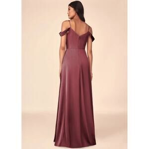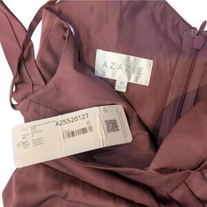 Azazie Ocean Stretch Rosette A-Line V-Neck Pleated Stretch Satin Dress Size 8