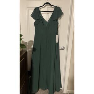 Azazie Omari Dark Green Bridesmaid Wedding Guest Long Dress Size 16 NWT