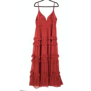 Azazie Rachel A-Line Chiffon Dress Womens Size A14 Pomegranate Tiered Ruffle
