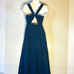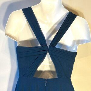 Azazie SZ 2A Navy chiffon open back flattering long formal bridesmaid pleating