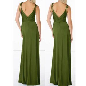 Azazie Satin Maxi Dress Formal Gown Bridal 2Side Pockets Emerald Green Size10