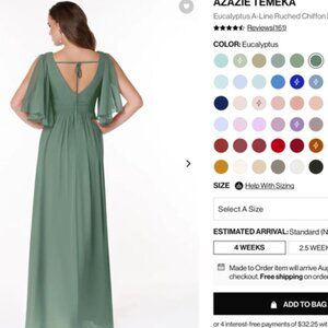 Azazie Size 12 Eucalyptus Green Formal Dress. Bought this dress(1 of 5😉) for my son's wedding and decide on another. New with tags. Garment bag included. ***Please read - I typically wear a size 10, but needed the 12 in this brand***