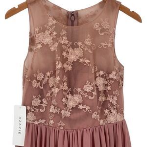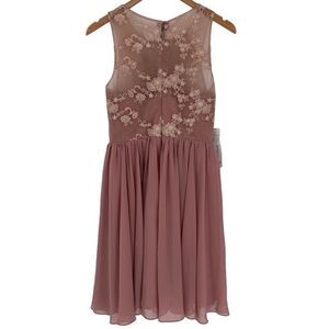 Azazie Victoria Sheer Embroidered Sleeveless Knee Length Dress Dusty Rose Custom
