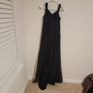 Azazie Womens Lace Maxi Dress Sz A18 Black Floral Whimsigoth Prom Dark Romantic