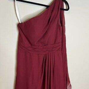 Azazie burgundy Cabernet chiffon one shoulder dress