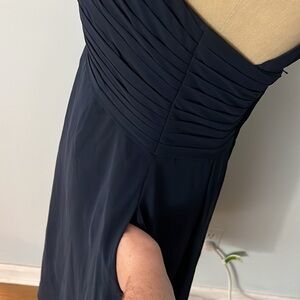 Here is a Azazie short navy blue bridesmaids or prom dress never worn.