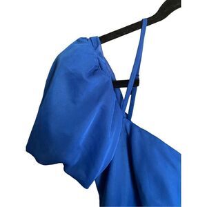 Azazie women’s plus size royal blue side slit, sheer overlay bridesmaid/ gown, S