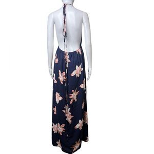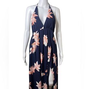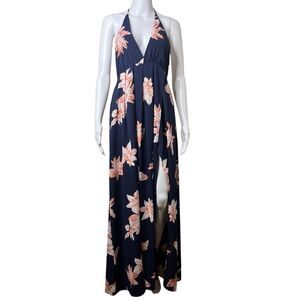 Azbro Halter Floor Length Maxi Dress Blue and Pink Size Large