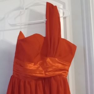Azbro long red dress. sheer with long slip under. Size L fits junior size. Beautiful red. Good condition worn once.