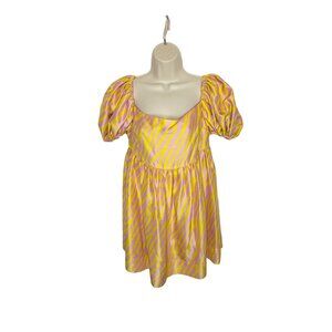 Azeeza Kam Pink Yellow Zebra Puff Sleeve Mini Dress - Size S