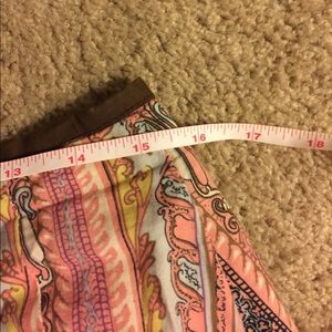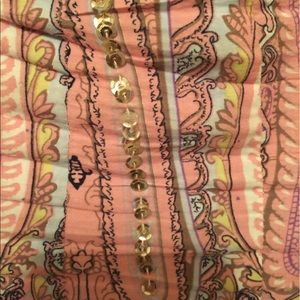 Beautiful romantic floral skirt. With gorgeous detailed embellishments of sequins, netting, zipper and tie. 26" long 15 1/2" wide at top where the tie is.