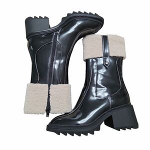 Azela Wang Callaway Black Chunky Heel Boots, Nwt, Real sherpa lined. New