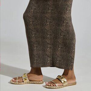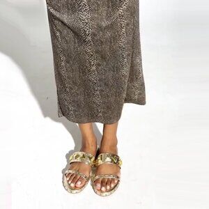 Azelea Wang Rylie Gold Embellished Slip On Vegan Leather Sandal