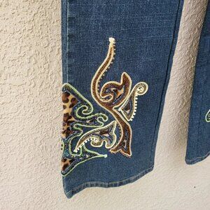 Azita Woman's Blue Embroidered/Beaded/Animal Print/Paisley Bootcut Jeans Sz 6