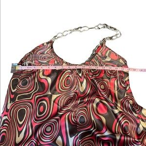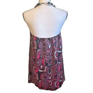 Pink & Black Psychedelic Print Dress with Silver Chain Halter
