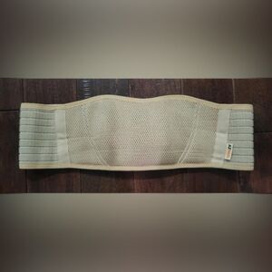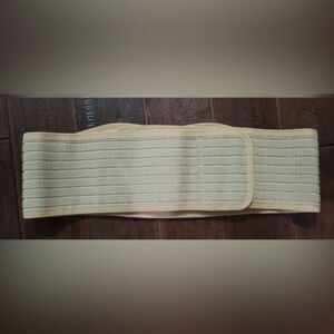 Only worn two times since purchased. Elastic belt with Velcro closure. Very supportive.