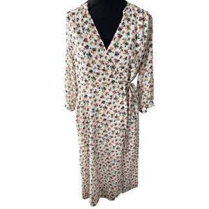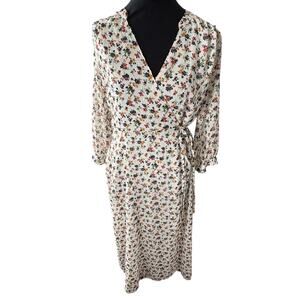 Azoe Floral Wrap Dress with Swiss Dot Detail – Size Small, Long Sleeve, Midi M