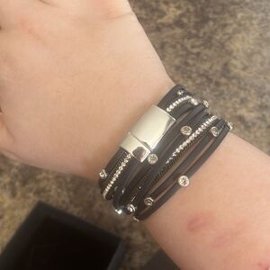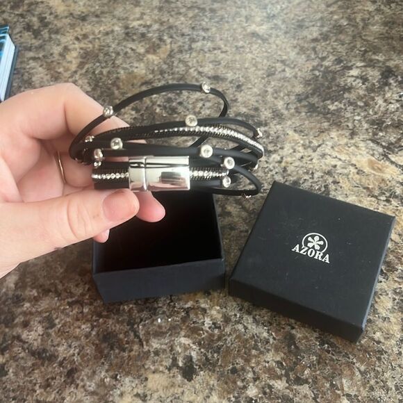 Azora black and silver bracelet with snap closure