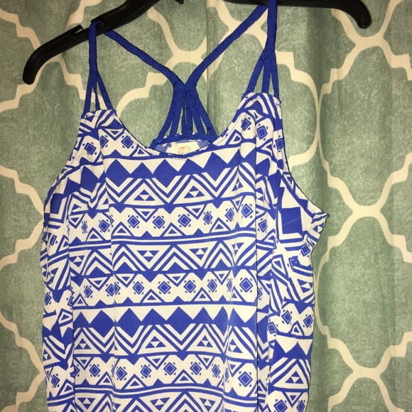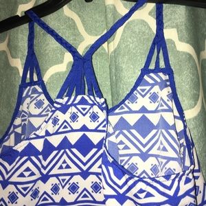 Very comfortable, loose, breathable fabric. Awesome Aztec print, with braided straps and racer back.