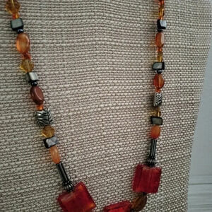 Aztec Boho Glass Polish Beads Necklace Silver Tone