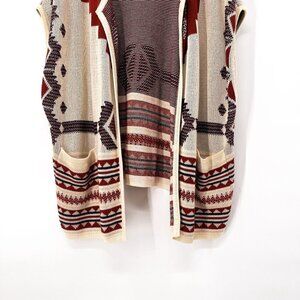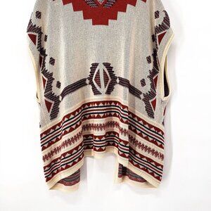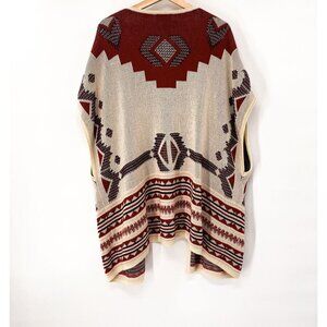 Aztec Boho Knit Open Front Draped Cardigan Kimono Cape Shawl Small Medium