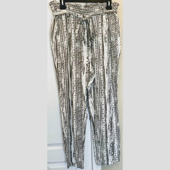 Aztec Boho Pants, Comfy, Light Weight Material, High-Waisted Aztec Pants, Tie Waist, Paper Bag Pants, Used, Like New