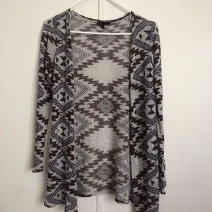 cute Aztec cardigan! creme, blue, and brown. pretty long also, very cute on.