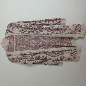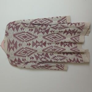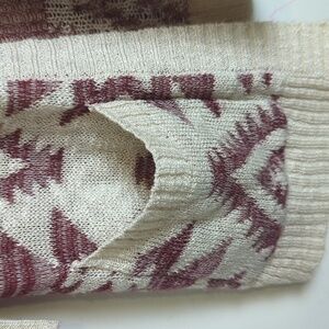 Aztec Cardigan Slouchy Pockets Burgundy & Cream Size Women's Small