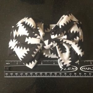 Aztec design messy bow in black and white. Circumference is 13in unstretched and can comfortably fit up to 19in. But can be tied to your specifications. Just message me when purchasing. **This bow has been tied and glued.** - so no more worrying about your little one pulling it out. This is a handmade item so may have minor imperfections typical of this type of product. You can bundle any of my bows for $10 for 1st then just $4 each additional. Just message me before purchasing!