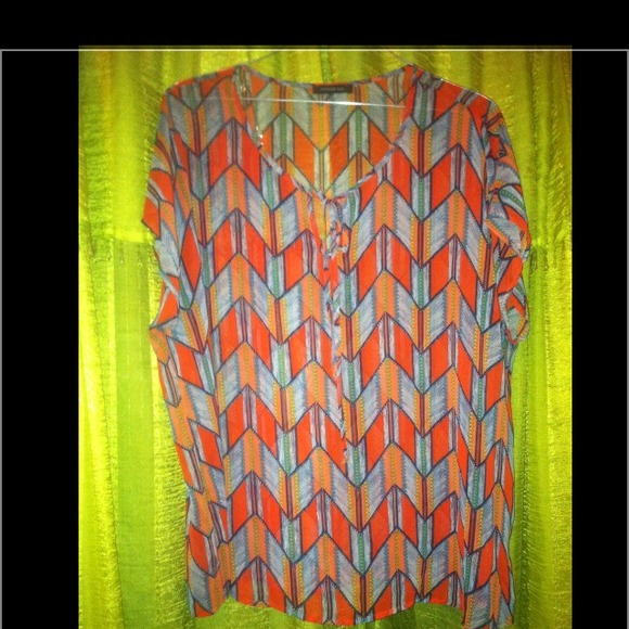 Aztec patterned blouse w/ a pinch of colors including orange. turquoise, gray, & blue. If you want to pull off the Indian chiq look, go ahead & buy!! BRAND NEW!!!!!!
